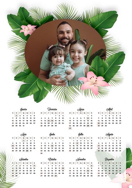 Todos os calendários estão no Formato PNG (com o espaço para foto com o Fundo Transparente) e podem ser impressos no tamanho A4, 20x30cm ou 15x21cm sem perca de qualidade ou cortes indesejados.