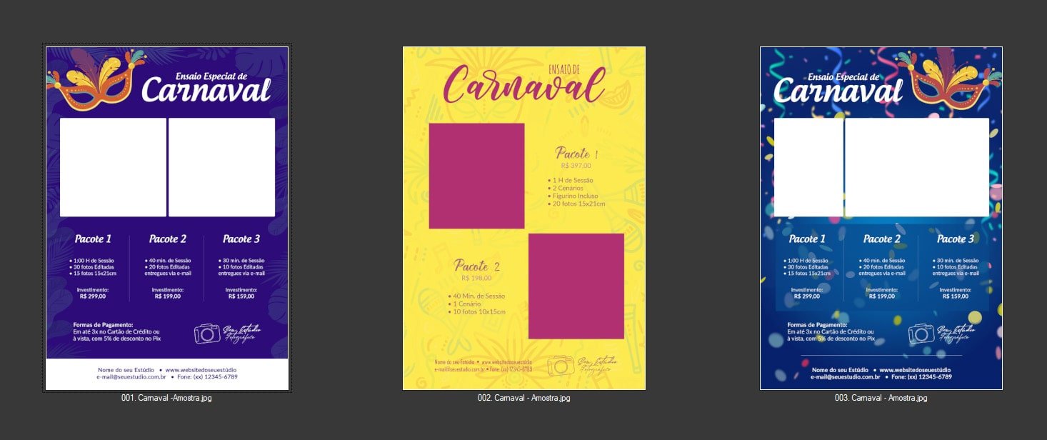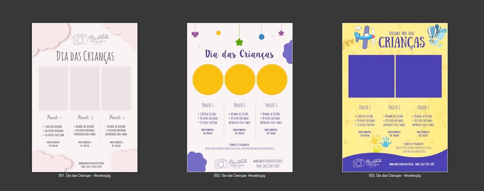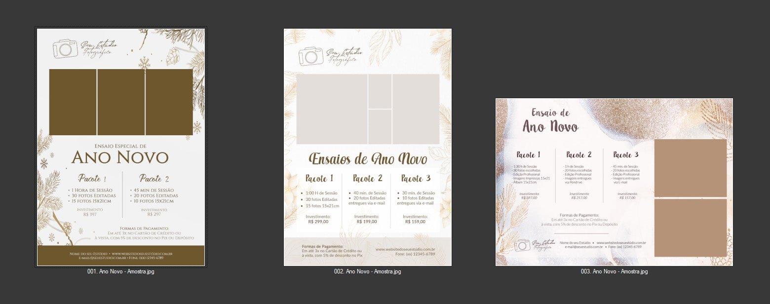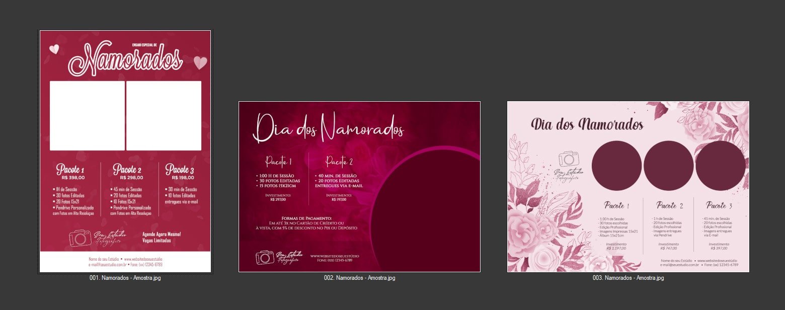 E foi pensando no quanto a nossa vida é corrida e em como o nosso tempo é limitado, que desenvolvi uma Coleção Completa com 36 modelos de Propostas de Orçamentos Editáveis no Photoshop, (3 para cada Data Comemorativa do ano incluindo a Copa do Mundo) para que você possa apresentar suas opções de pacotes e valores de maneira prática, bonita e profissional.